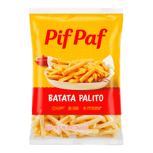 Experimente a nossa irresistível Batata Palito Pif Paf! Deliciosamente crocante por fora e macia por dentro, nossa batata é a companhia perfeita para suas refeições. Prepare de maneira prática e rápida, seja no forno, na airfryer ou frita. Adicione um toque de sabor e conveniência às suas refeições com a Batata Palito. Coma como aperitivo, acompanhamento ou como preferir. Transforme qualquer momento em uma experiência saborosa com a qualidade que só a Pif Paf pode oferecer.