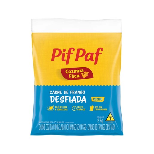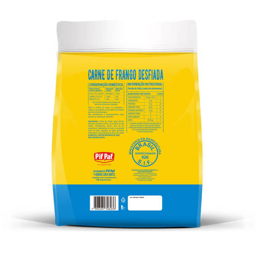 Apresentamos a Carne de Frango Temperada da Pif Paf, Cozida e Desfiada, feita a partir do filé de coxa e sobrecoxa sem pele, e já temperada para sua conveniência. Este produto oferece praticidade e sabor em cada porção. Ideal para uma variedade de pratos, de saladas a refeições principais, esta carne de frango é cozida, desfiada e pronta para uso. Agilize suas refeições sem sacrificar o sabor!