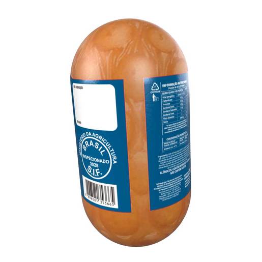 Peito de frango, água, proteína de soja, sal, amido, açúcar, estabilizante tripolifosfato de sódio e difosfato de sódio, espessante carragena, aromatizante aroma natural de fumaça, realçador de sabor glutamato monossódico, antioxidante eritorbato de sódio, regulador de acidez citrato de sódio, acidulante ácido cítrico, aroma idêntico ao natural de cravo e de canela, corante natural carmim de cochonilha condimento natural e conservante nitrito de sódio. NÃO CONTÉM GLÚTEN. ALÉRGICOS: CONTÉM DERIVADOS DE SOJA.